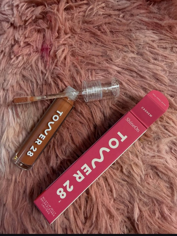 TOWVER 28 markalı, parlak kahverengi tonunda, kolay sürümlü ruj. Pembe kutusunda net marka yazısı bulunur.