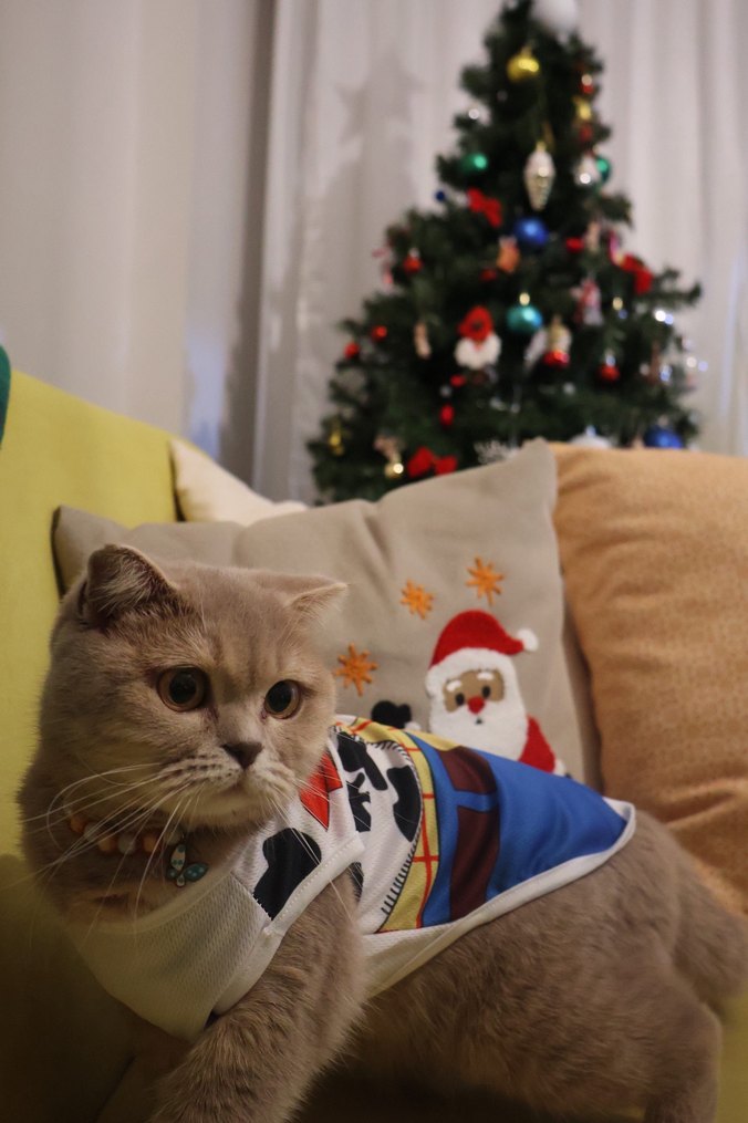 Yumuşak kumaştan yapılmış, renkli kahverengi kedi kıyafeti, kedinizin görünümüne neşeli bir dokunuş katıyor.