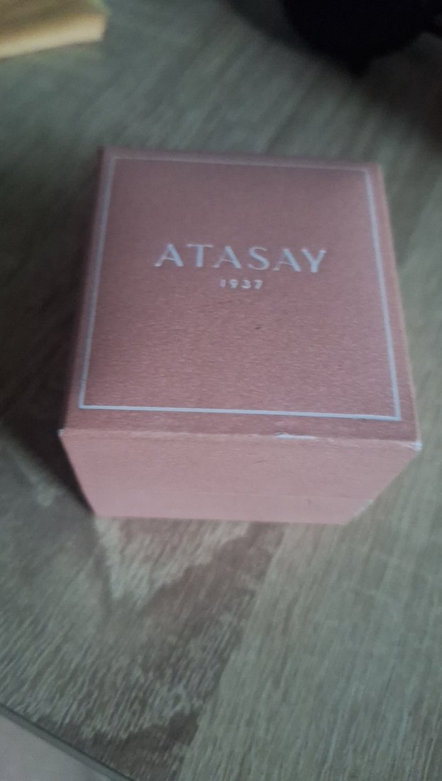 Düğünde alındı yeni tekrar kullanılmadı. Marka adı ve 1937 yılı yazılı toz pembe renk Atasay kutusudur. Basit ve şık tasarıma sahiptir.