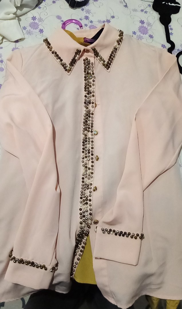 Toz Pembe Çakma Boncuklu Kadın Gömlek