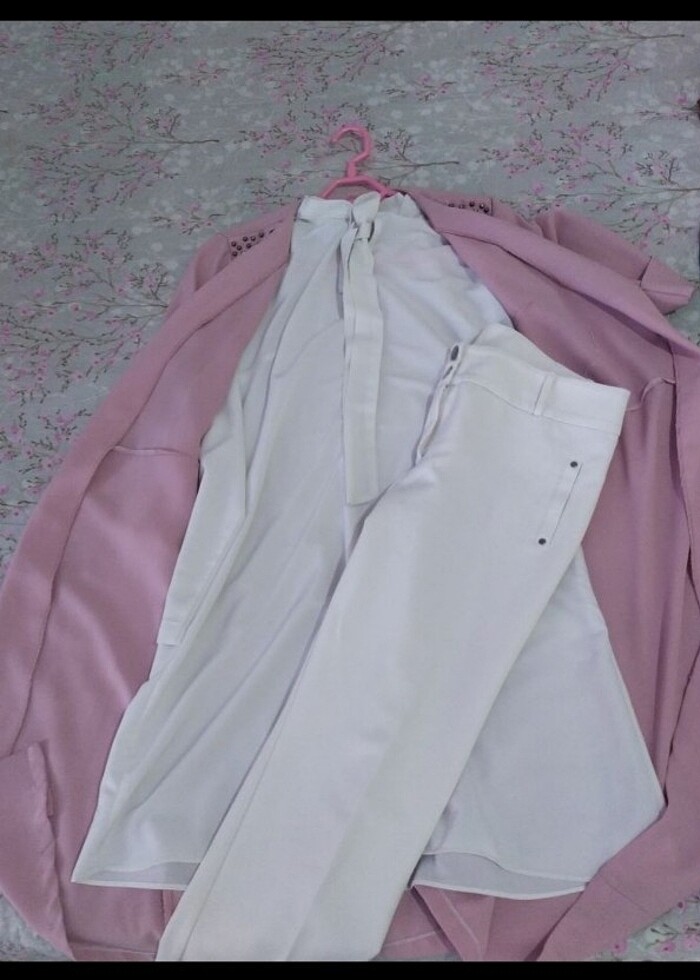 Toz pembe ceket gomlek takımı