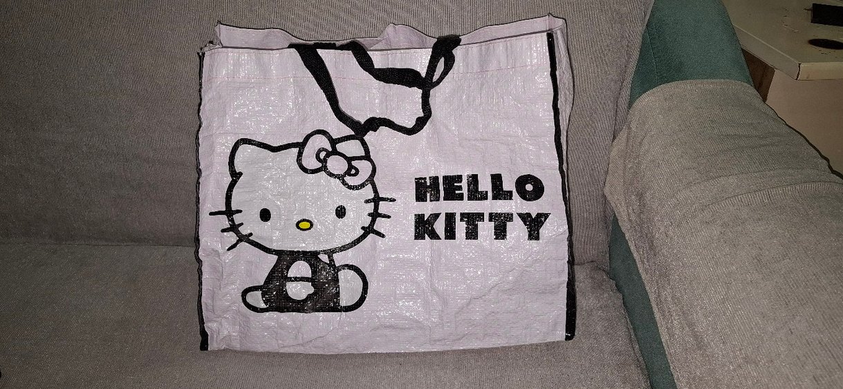 Toz pembe Hello Kitty Çuval çanta. Bir kaç kez kullanıldı temiz. 39X31cm. 16cm.'de alt ve yan körüklü kısmı var.