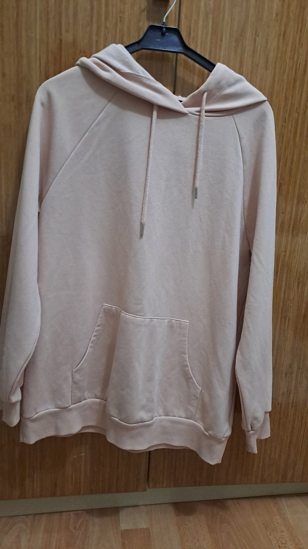 toz pembe renkte, pamuk kumaştan yapılmış, rahat kesim ve yuvarlak yakalı uzun kollu sweatshirt. Günlük kullanıma uygun, sokak stiline hitap eder. Hic giyilmedi