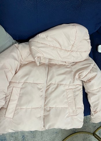 kız için pastel pudra renginde, kapüşonlu ve yumuşak sıcak kumaştan yapılmış, cep detaylı mont. Dış mekan kullanımı için uygundur. ❄️