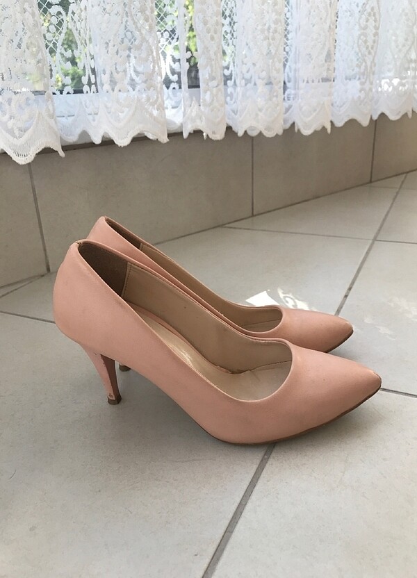 38 numara pudra renk topuklu ayakkabı fotoğrafta göründüğü gibidir