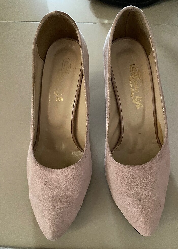 Toz pembe topuklu ayakkabı