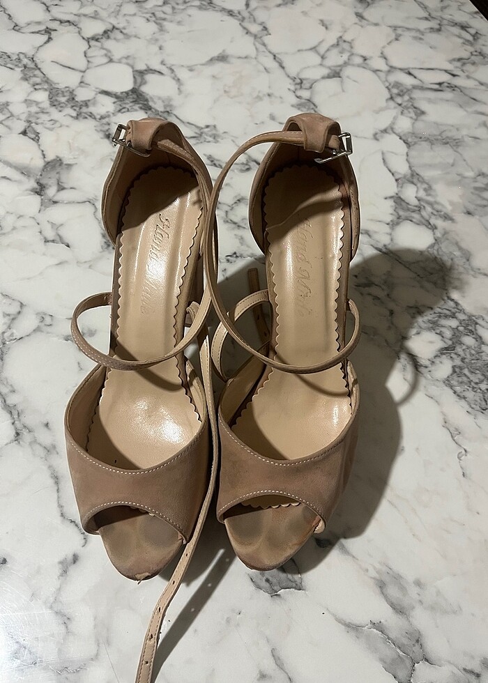 8 cm’e yakın topuğu var rahat bir ayakkabı kadifemsi bir kumaşı var