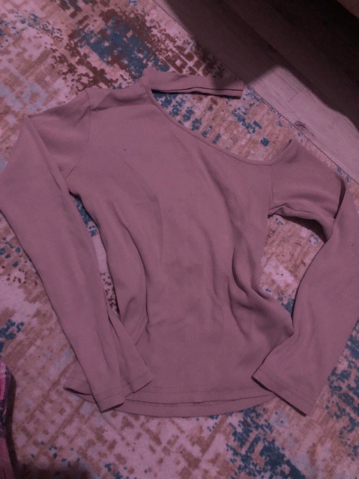 toz Pembe Uzun Kollu Dar Kesim Bluz