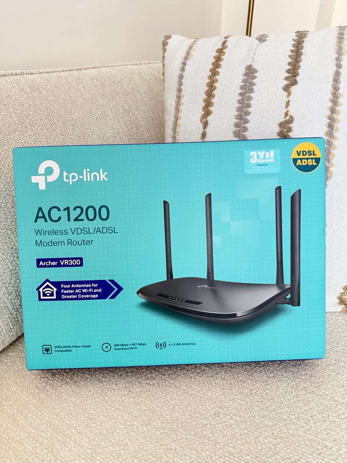 MediaMarkt tan alındı. Hiç kullanılmadı ihtiyaç fazlası olduğu için satıyorum. TP-Link AC1200 modem router, kablosuz VDSL/ADSL bağlantısını destekler. Dört anteniyle geniş kapsama alanı ve hızlı Wi-Fi sağlar.