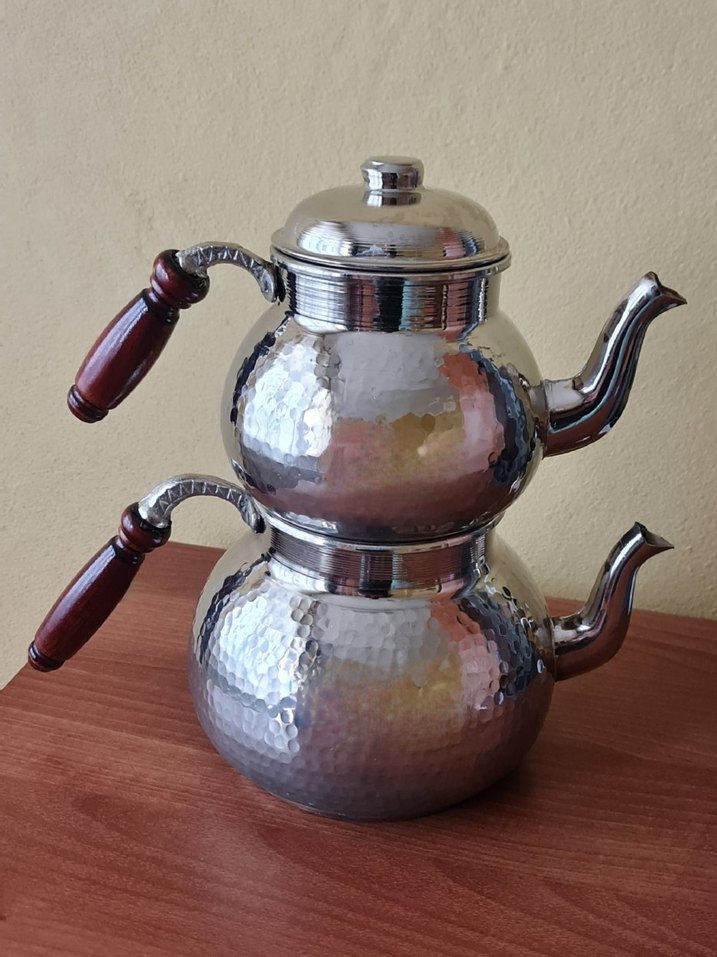 Trabzon İşi El Dövmesi Büyük Boy Geniş Taban Bakır Çaydanlık Takımı
