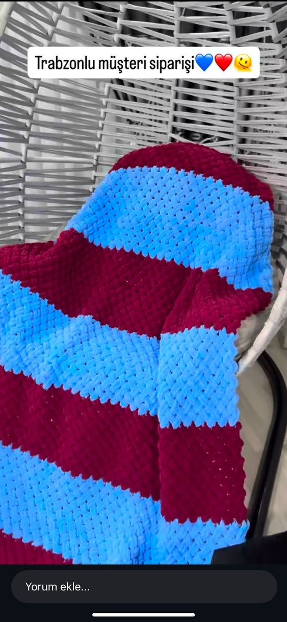 120/180 hasır modeldir. İstediğiniz ölçüde ve renkte de örülür lütfen mesaj atınız Yumuşak örme kumaştan yapılmış, mavi ve bordo geniş şeritlere sahip renkli çocuk battaniyesi. Çocuklar için sıcaklık sağlar.