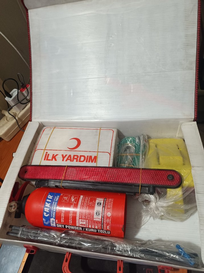Trafik Seti Tam Takım Tüplü, Çantasında ilk yardım seti dahil fotoğraflarda gorunenlerin hepsi bir sert plastik Çantasında verilecektir, her araca gerekli