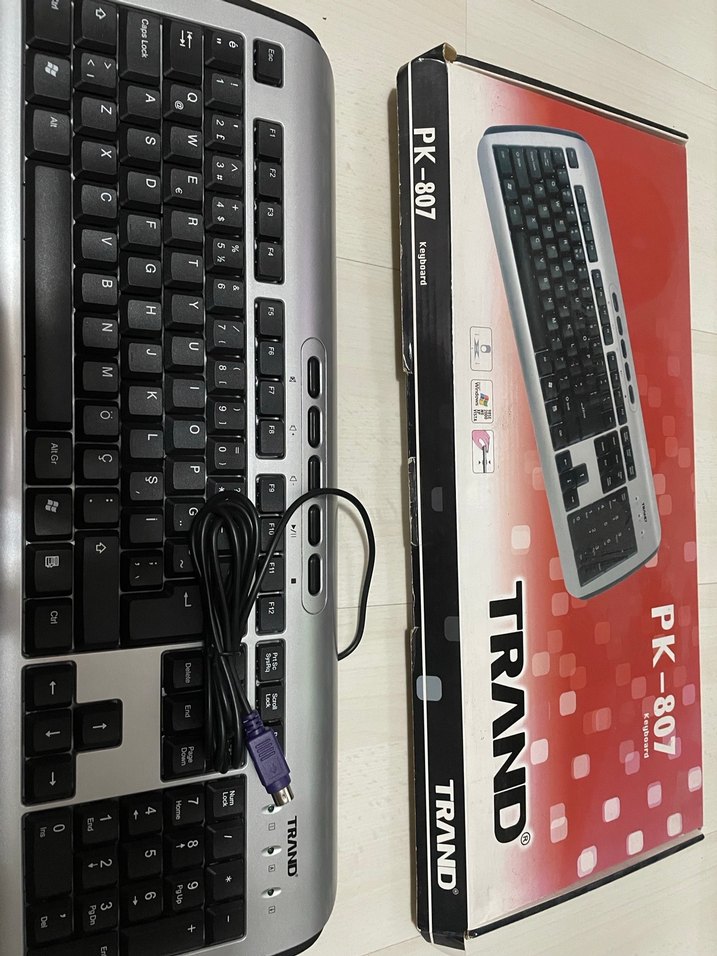 TRAND PK-807, PS/2 bağlantılı siyah kablolu bir klavyedir. Standart tuş dizilimi ve koyu renk tasarımıyla masaüstü kullanımına uygundur. ⌨️