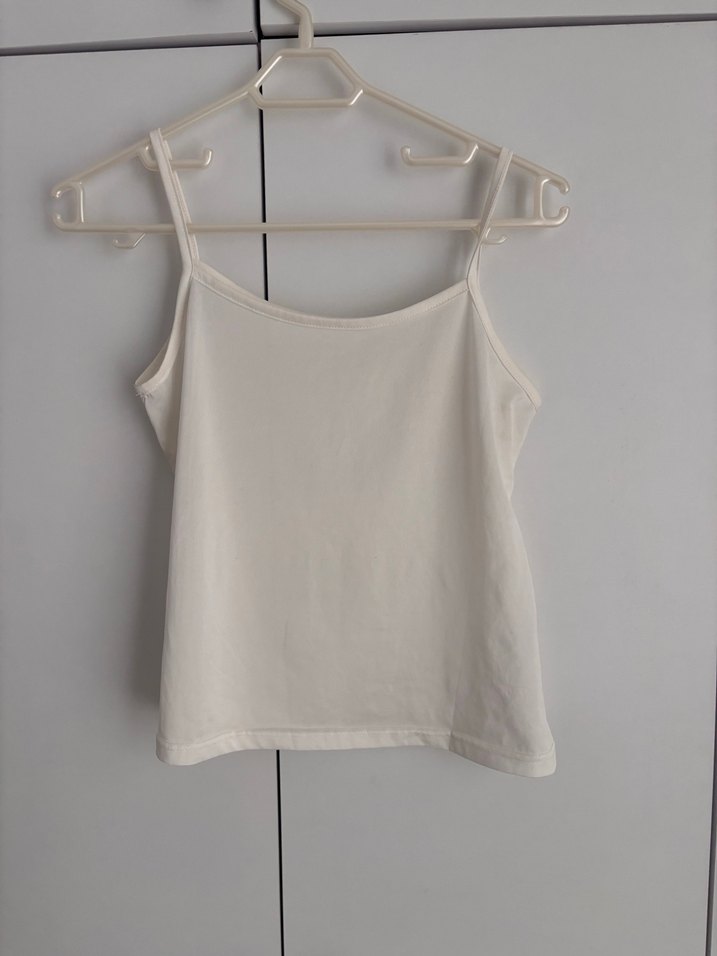 Yumuşak pamuktan yapılmış, ince askılı beyaz mini atlet. Minimalist ve desensiz tasarım, günlük kullanıma uygun.