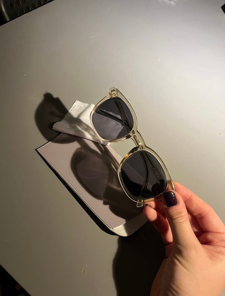 transparan çerçeve ve gri camlı, çağdaş ve klasik zarafeti birleştiren güneş gözlüğü. Paris esintili tasarım. ️