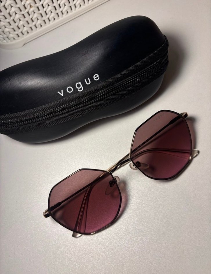 transparan camlı, minimalist tasarımlı kadın güneş gözlüğü. 'vogue' marka koruyucu kutu ile birlikte.