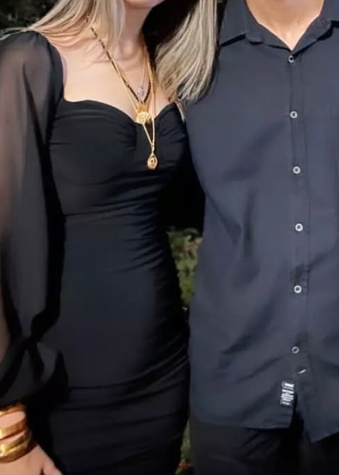 Transparan kol kare kalp yaka siyah mini elbise