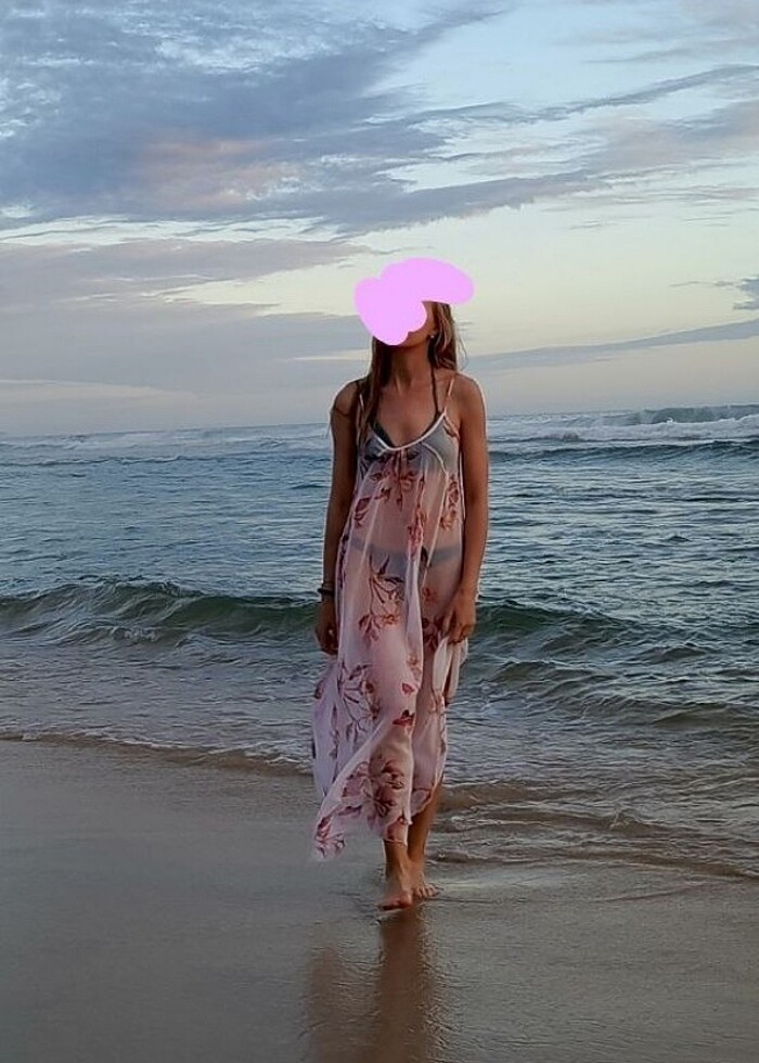 çiçek desenli, transparan pareo olarak da kullanabileceğiniz şık plaj elbisesi. s beden, 163boy 48kg kız arkadaşımda fotodaki şekilde duruyor ona göre kıyaslayabilirsiniz. gayet iyi durumda.