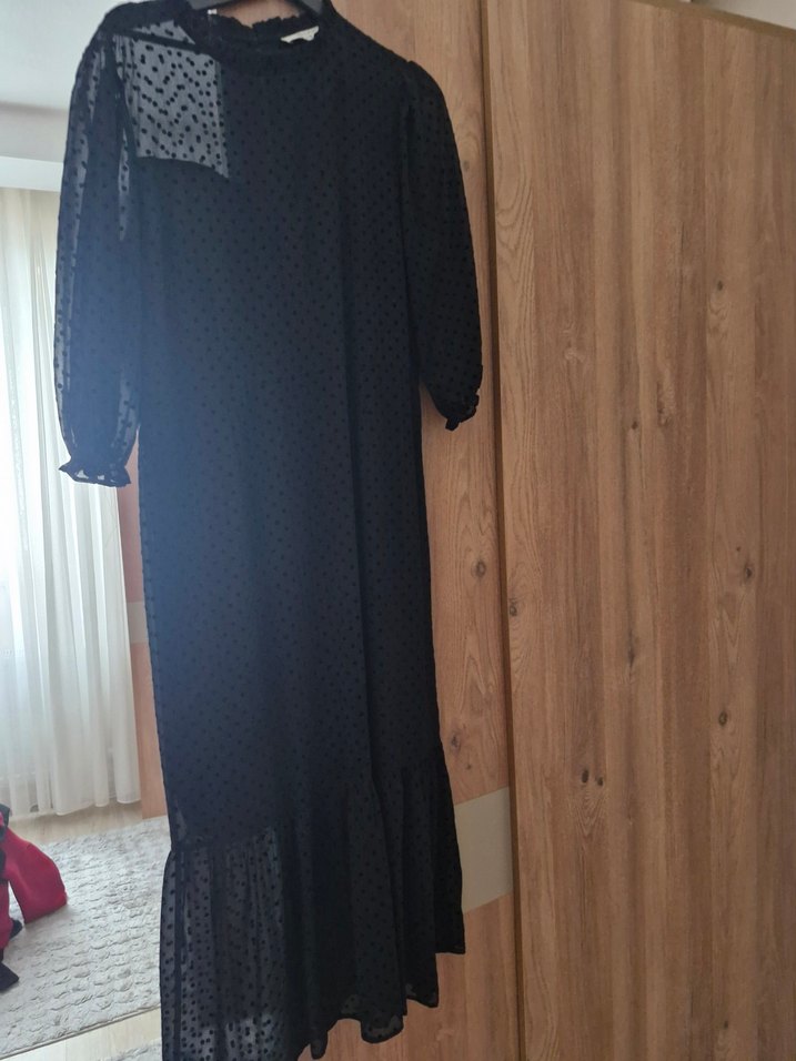 Transparan Puantiyeli İÇİ ASTARLI siyah elbise 44 beden