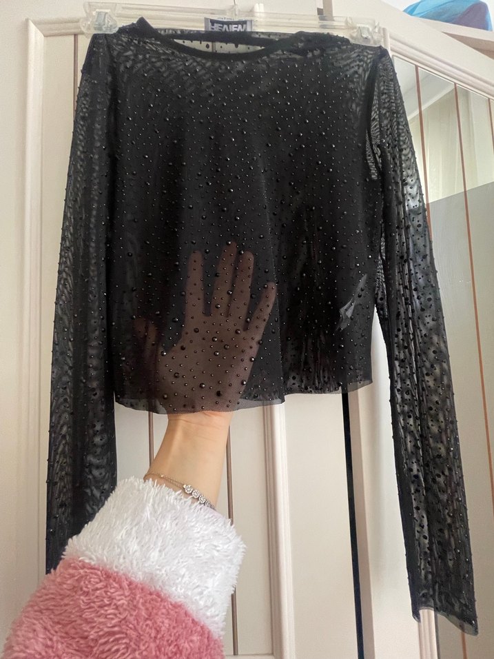 Transparan taş işlemeli bluz