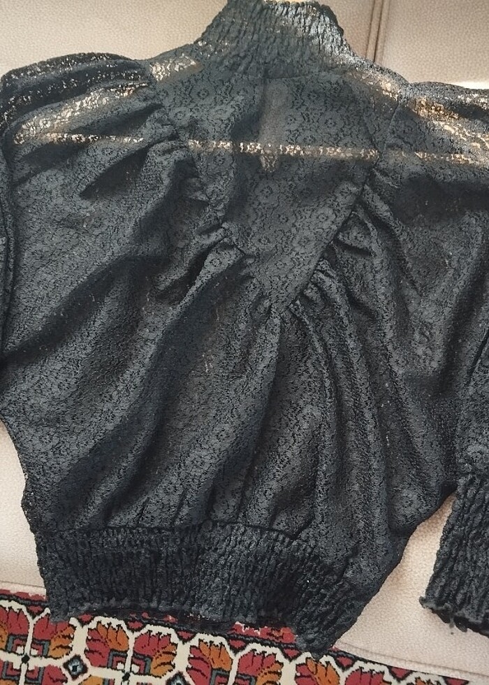 Transparan yarasa kol dantelli bluz