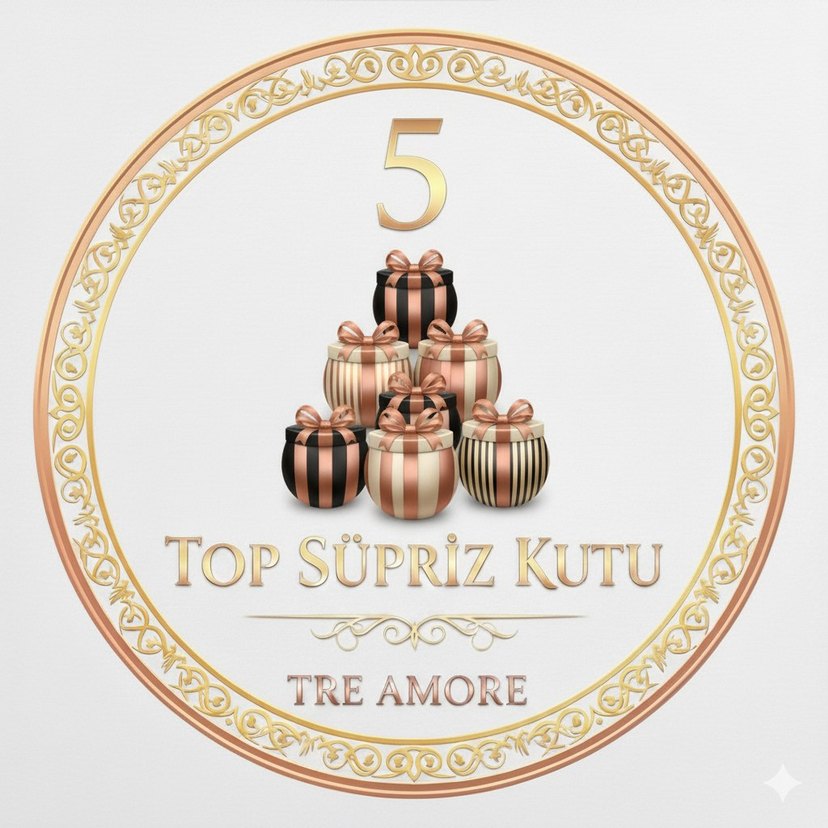 Altın renkli, 5 adet şık kurdeleli hediye paketi içeren Treamore Top Süpriz Kutu.