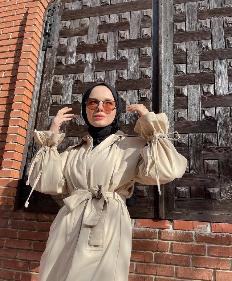 Camel rengi kolları büzgü detaylı Hooopstore marka trençkot duruşu çok cool çok güzel hiçbir sorunu yok tertemiz birçok bedene olur