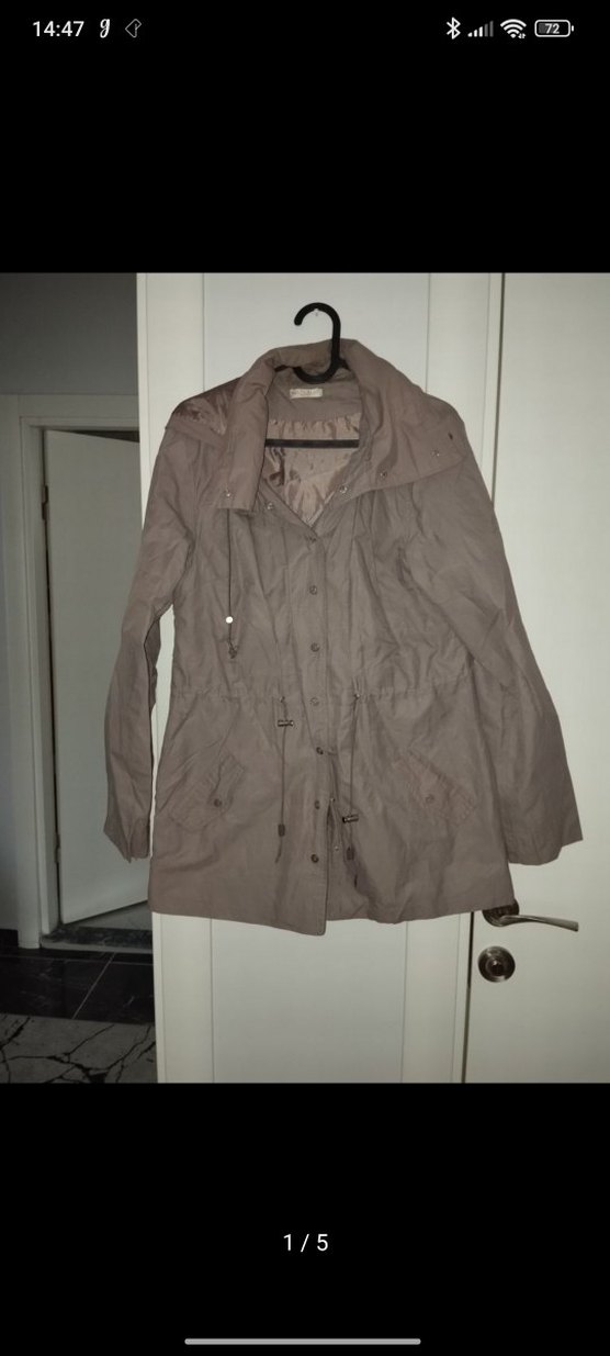 Bej keten kumaştan, düğmeli, uzun kollu, keten kumaşlı, rahat kesimli midi uzunlukta kadın ceket. Notch yaka ve sokak stiline uygun.