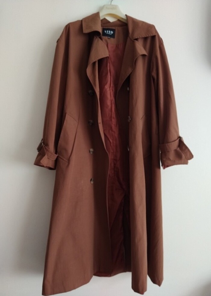 Suud collection Camel rengi el Kemer detaylı cepli düğmeli astarlı trençkot 2 beden 40 42 uyumlu