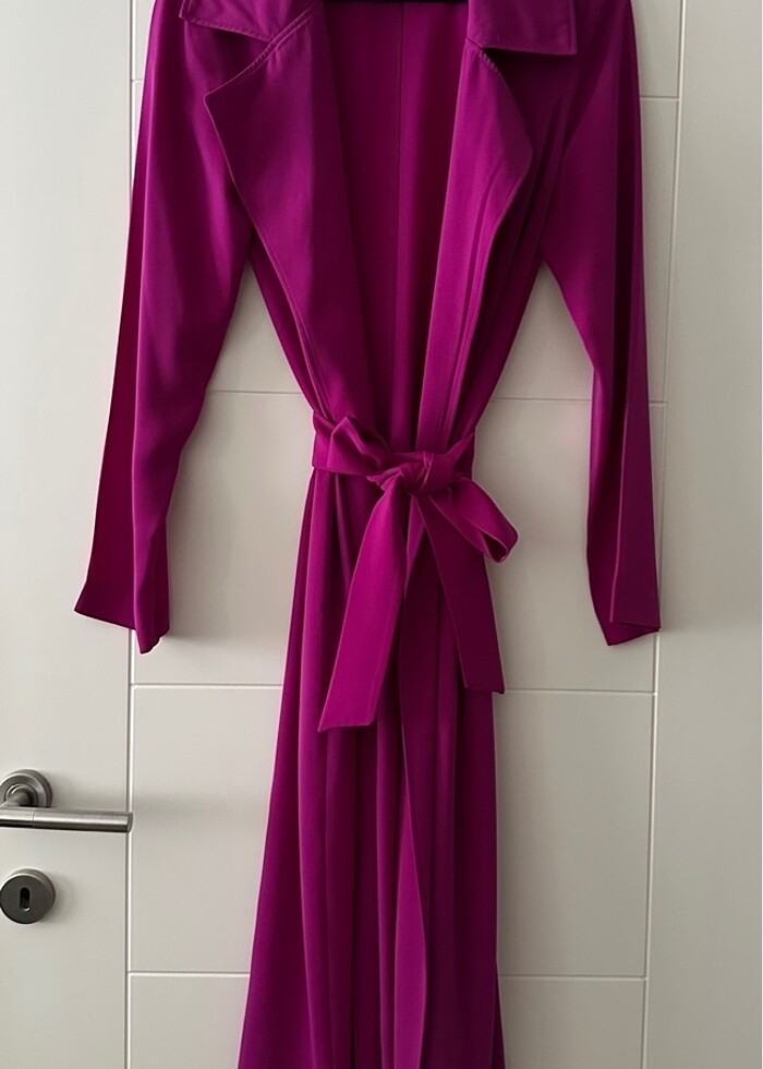 Tertemiz. Yazlık kuşaklı trenç. Oldukça kaliteli bir krep kumaşa sahiptir. 36/38 beden uyumludur.