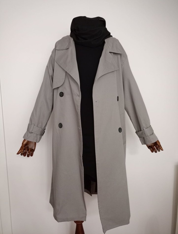 DeFacto Trenckot 38 beden ile uyumludur Gri renkli, uzun kollu, diz boyu kadın trençkot. Sentetik kumaştan, bol kesim ve minimal detaylarla günlük kullanıma uygun şık bir parça. ️