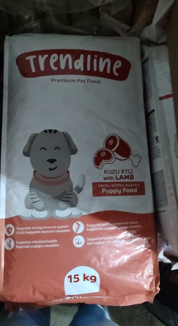 Trendline kuzu etli yavru köpek maması, bağışıklık sistemi, bağırsak sağlığı ve güçlü kemikleri destekler. 15 kg'lık paket.