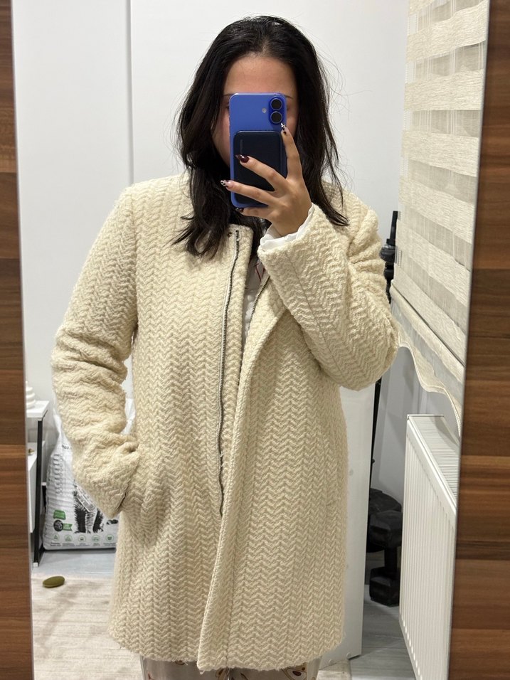 Trendy Beyaz Örgü Yün Kaban