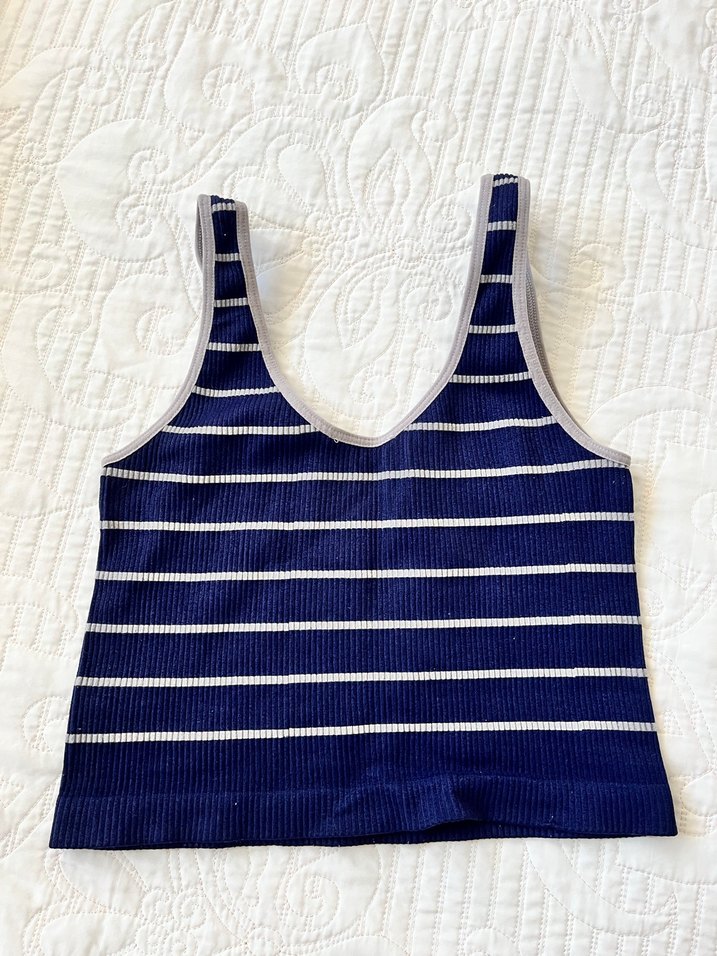 Trendy Fitilli Mavi Çizgili Kadın Atlet