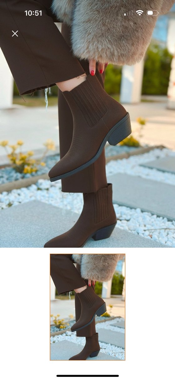 Kahverengi süet kadın bot, blok topuk ve örgü detaylara sahip, rahat sokak stili için uygun.
