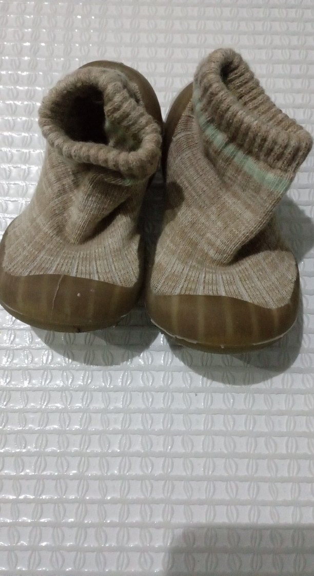 Kahverengi örgü erkek bebek patik, kauçuk tabanlı, rahat ve sade tarzda. Yumuşak ve esnek yapıdaki küçük ayaklar için uygun.