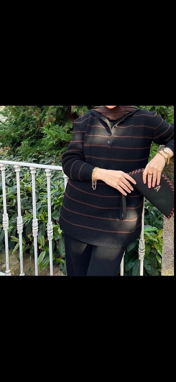 Siyah renkli, uzun kollu, yüksek yakalı triko tunik. Rahat kesimi ve örgü kumaşı ile günlük sokak stiline uygundur.