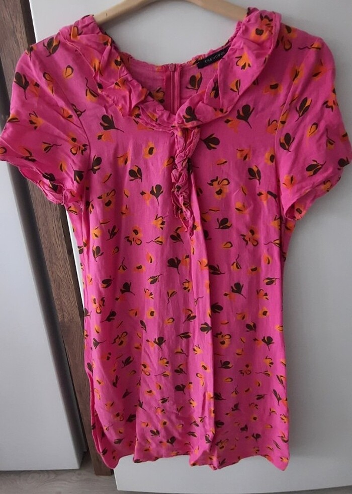 Pembe viskoz terletmeyen yazlik kisa kollu iki kol arasi 50 cm omuzdan boy94 cm rlbise