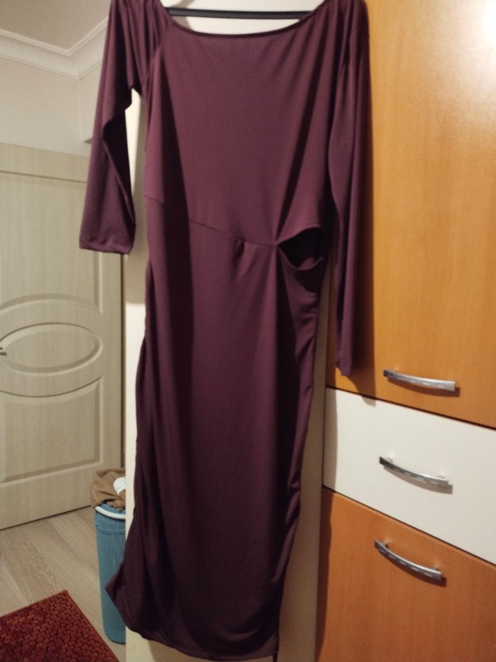 ## TRENDYOL## 44 BEDEN##Bordo Uzun Drapeli Kadın Elbise##