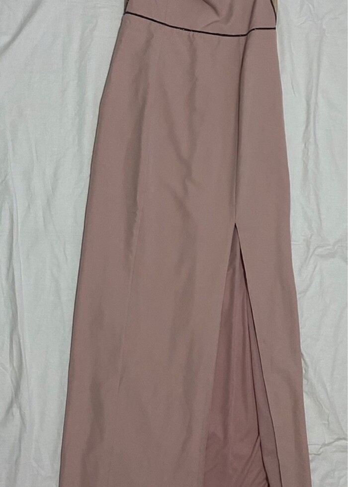 Ürün alındı ve hiç kullanılmadı, etiketlidir. Askılı, taş detaylı, yırtmaçlı ve astarlıdır. Kol altı detayları tüldendir. Boy: 165 cm, kol altı: 45 cm, bel: 39 cm, yırtmaç: 80 cm’dir. Trendyol markadır. Rengi pudra pembesi tonundadır.