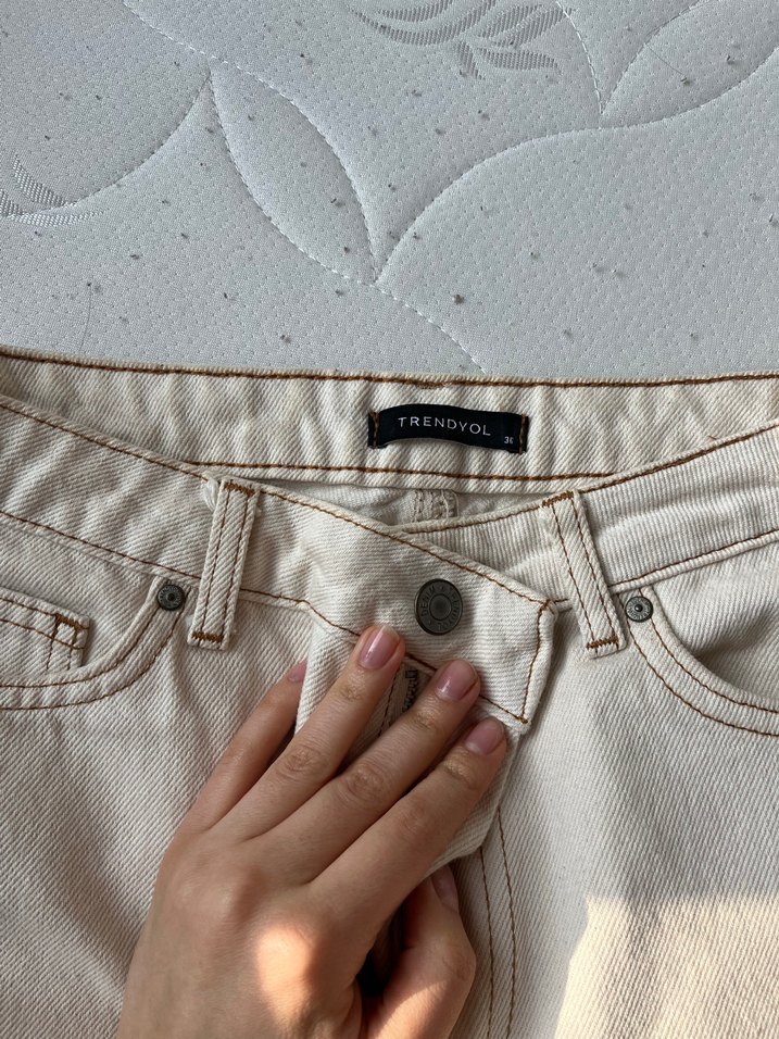 TrendYol Bej Düğmeli Kadın Kot Pantolon