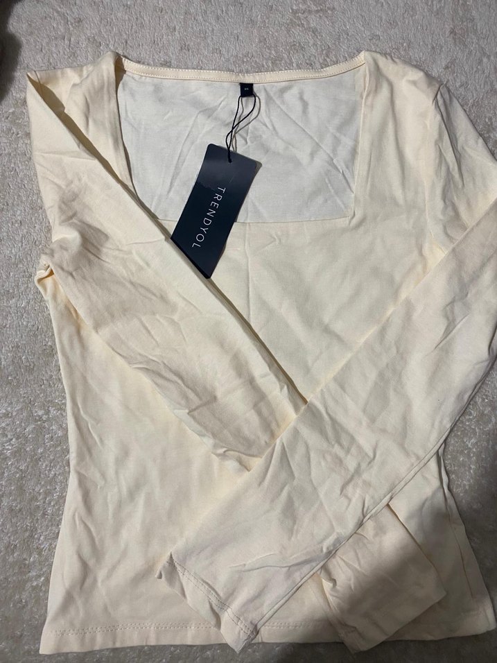 Pamuk kumaştan, V yakalı ve uzun kollu, fitted beyaz bluz. Günlük kullanıma uygun, rahat ve şık sokak tarzı görünüm sunar. Kare yaka etiketliii
