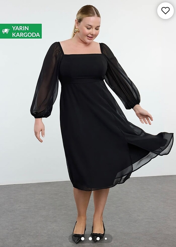 Trendyol Büyük Beden Kare yaka elbise