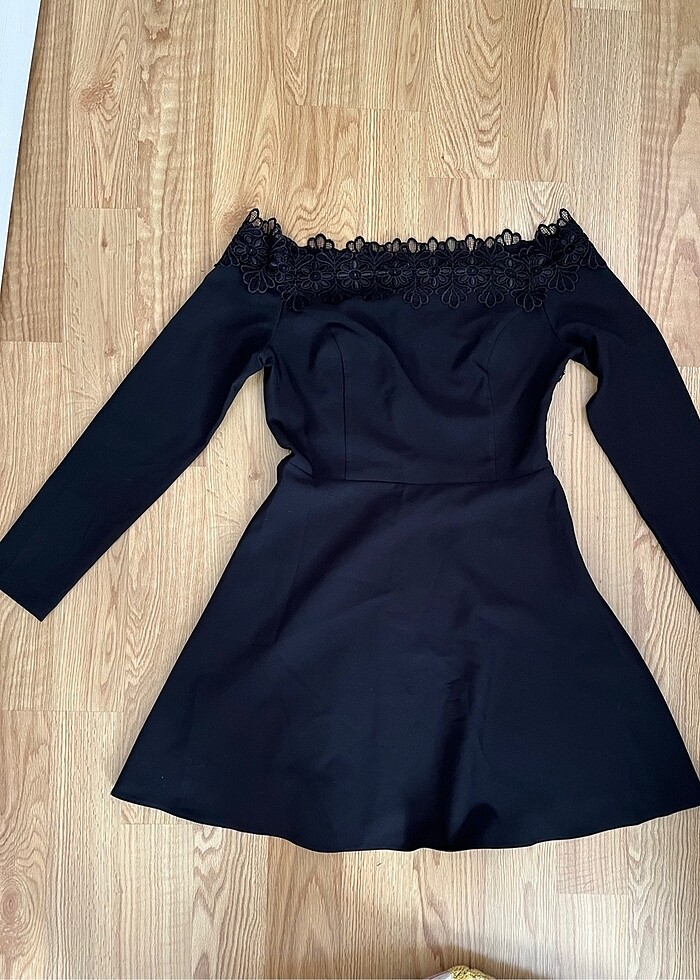 Kayık yaka güpürlü çok zarif bir elbise. Astarı var. Sayılı giyildi. Askıya takamadığım için iyi fotoğraflayamadım ancak ölçülerini ve detayları fotoğrafladım. Sorunuz varsa çekinmeden sorun :)