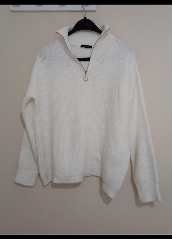 Trendyol fermuarlı triko kazak. S beden ama M'ye de olur. Yumuşak ve sıcak tutuyor. Yeni hiç giymedim. #trendyolkazak #ekrukazak #kazak #fermuarlıkazak