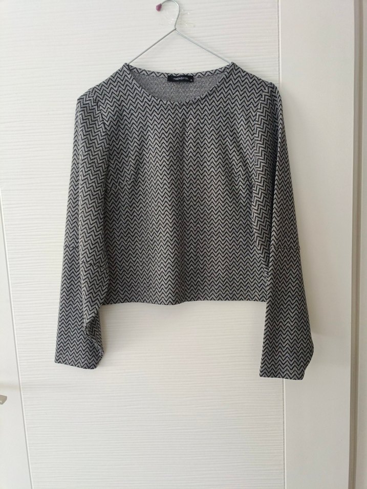Yeni. Defosuz.Hiç giyilmedi. Sadece 1 kez yıkandı. uzun kollu, yuvarlak yakalı crop bluz. Kendinden gümüş simli. Şık. ⭐İki koltuk altı arası 41 boy 46 cm⭐