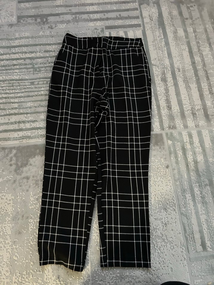 Trendyol Kadın Siyah Ekose Pilili Kumaş Pantolon