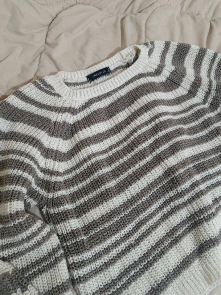 Trendyol Kahve Çizgili Kadın Triko Örgü Kazak