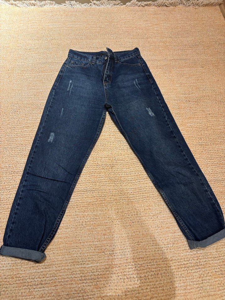 Lacivert renkli, rahat loose fit kesime sahip midi uzunlukta kot pantolon. Hafif yıpranmış detaylarıyla gündelik ve şık bir görünüm sunar.