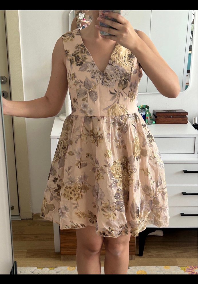 Trendyol M V Yaka Dantel Detaylı Midi Çiçekli Elbise